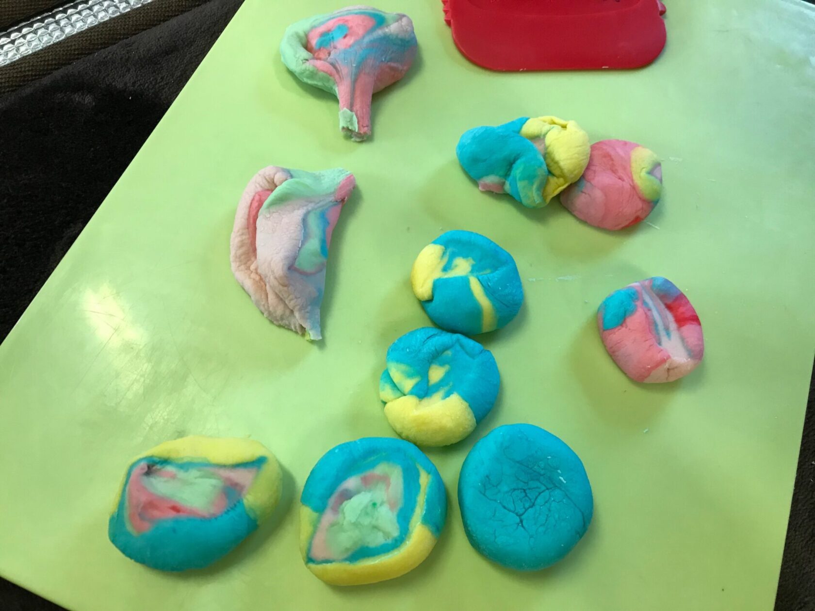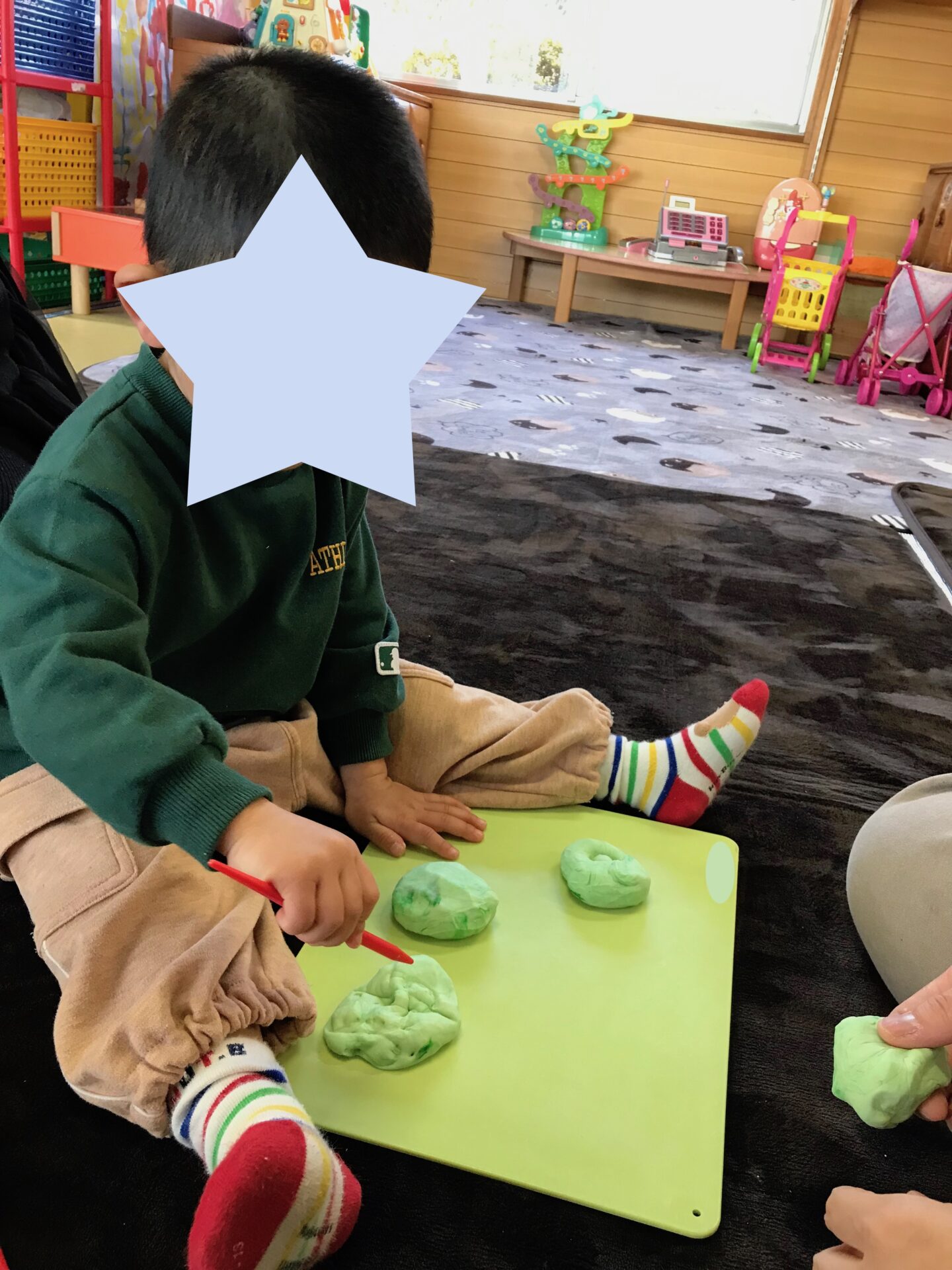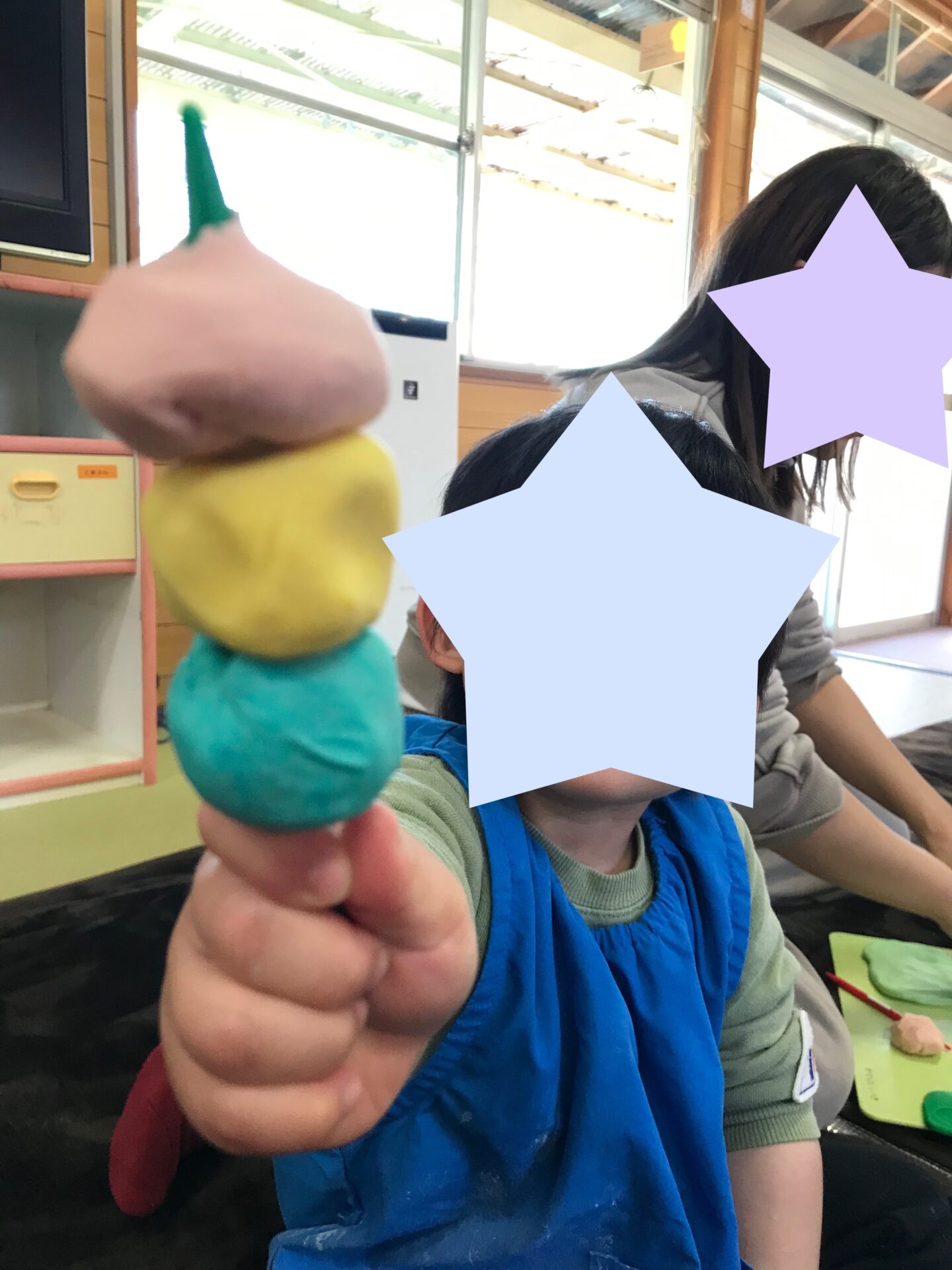 みんなで違う色の粘土を作ったので、少しずつ色を交換しながら粘土遊びをしました☆