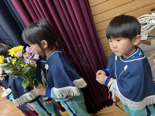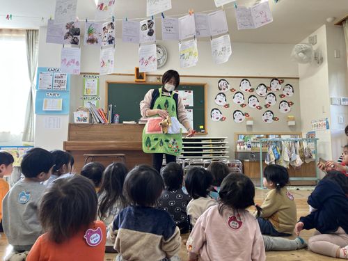 月曜日はおまいり。そして、今日は1月生まれの誕生会もありました。出し物は、幼児部はシルエットクイズ、乳児部はエプロンシアターで赤ずきんちゃんを見ました。幼児部も乳児部も食い入るように見入ってました。また、11日が鏡開きだったので、こども園では本日各クラスのお供え餅を健康で過ごせますようにと鏡開きしました。