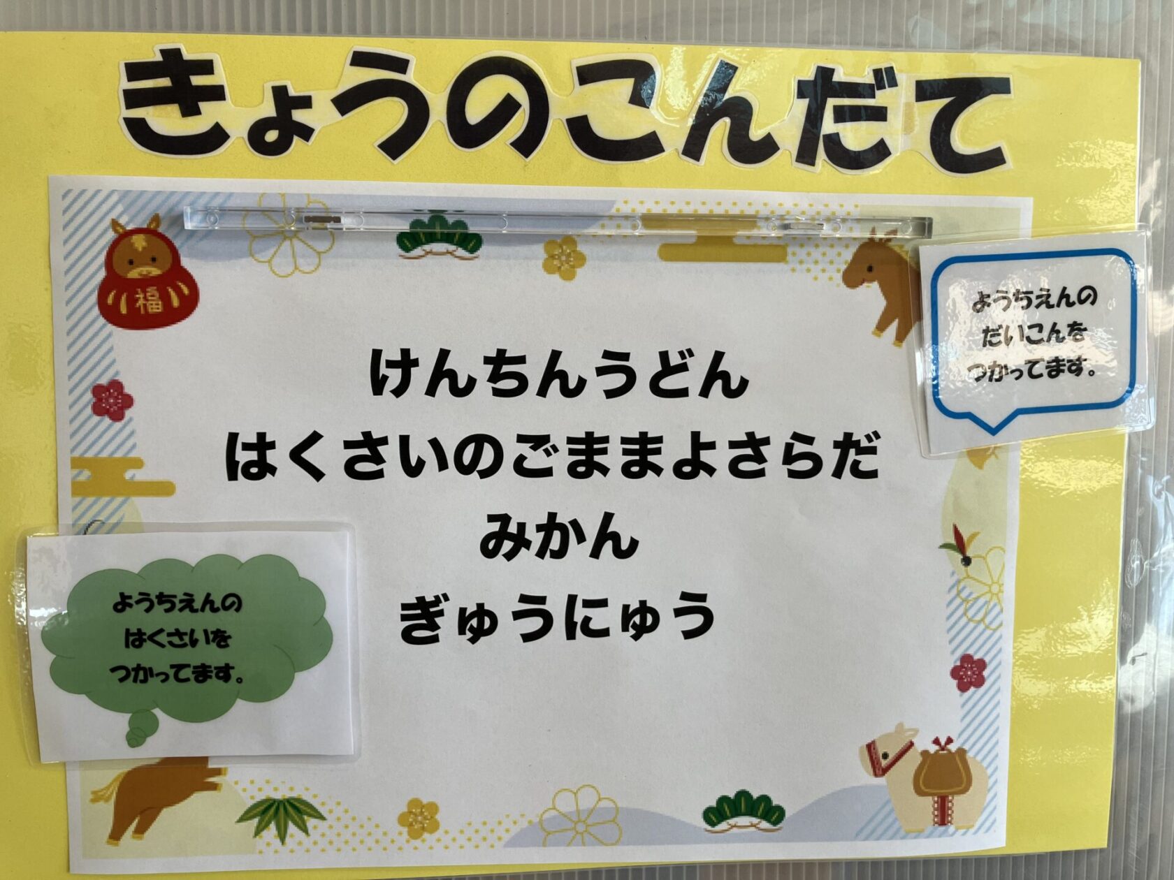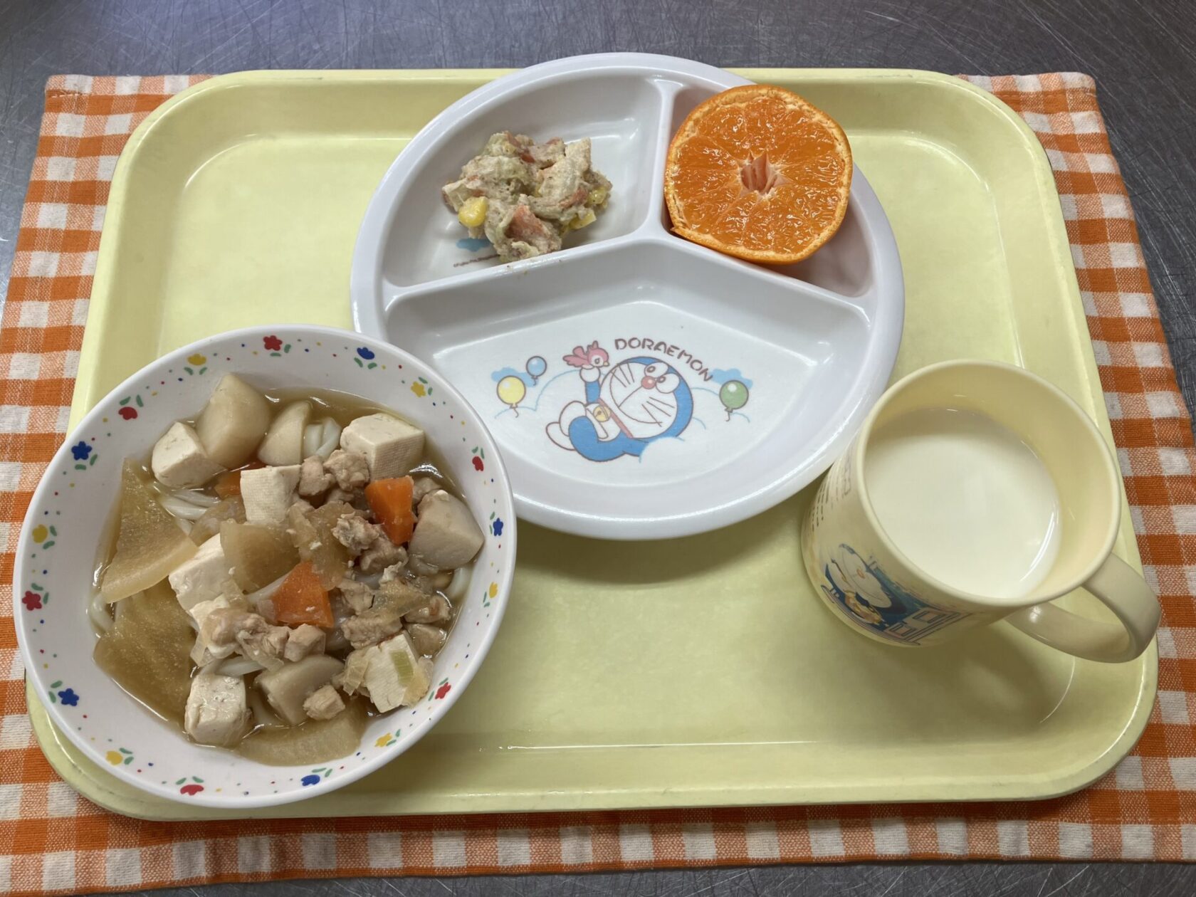 👩🍳👩🍳今日の給食👩🍳👩🍳 けんちん汁に入っている白菜、大根は園で収穫したものです