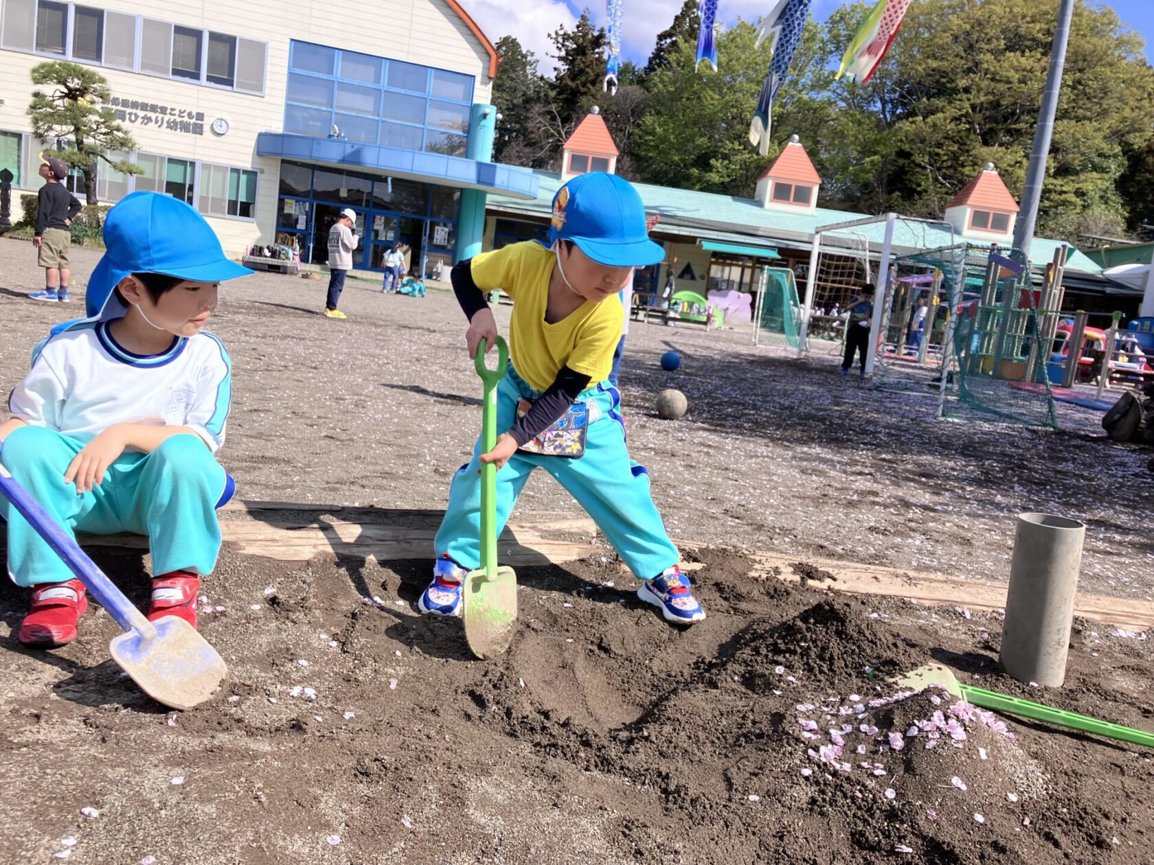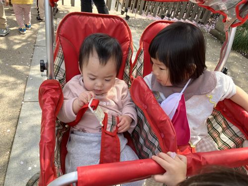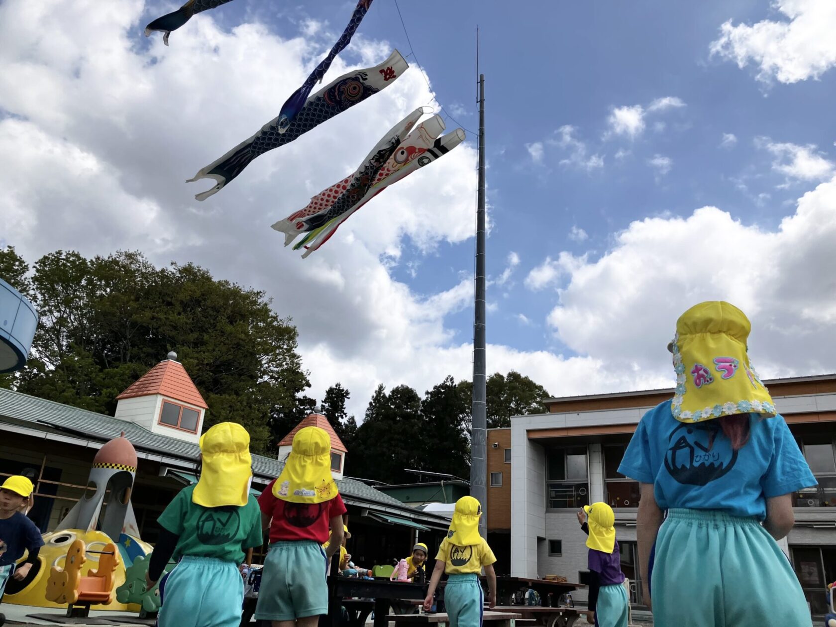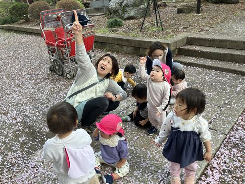 土曜日の雨風で桜の花も全部散ってしまったかな?と思ったらまだ残っていました。😊 風が吹くと桜の花びらがヒラヒラと舞い散りとても綺麗です。その下にいる子どもたち。花びらを取ろうとする姿がなんとも可愛い姿です。鯉のぼりも風をうけて気持ちよさそうに泳いでいました。