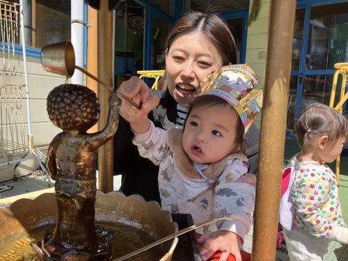 4月8日はお釈迦様がお生まれになった日 花まつりです。🌸 年長さんが花御堂の屋根に花を飾り付け。花御堂が完成すると、その下にはお釈迦様が甘茶の中に立つ姿があります。乳児部さんも幼児部の子どもたちもみんなでお誕生をお祝いしました。そして体育館で始業式。園長先生のお話を聞いて、1年間元気に過ごせるように仏様にお願いしました。