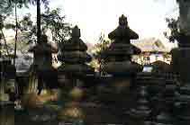 石質は五基が凝灰岩で二基が花崗岩、軸部と屋根が別石の多層式と屋根の上に上重の軸部を削り出した多重式の二種類があります。