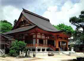 本堂 江戸時代には朱印地七石を受領、末寺も十ケ寺あったが弘化三年(一八四六)と明治三九(一九◯六)の火災で堂宇の大半を失い、一時衰微しかけたが歴代住職と檀徒一同の尽力によって本尊阿弥陀如来像と両脇侍像及び居貫不動明王像が修理され、さらに平成十年三月八日に大御堂が完成して落慶法要が営まれた。 |